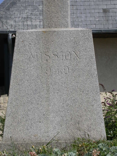 Cette croix en granite porte un Christ en fonte. La base de la croix témoigne de l'inscription suivante : MISSION/1949.