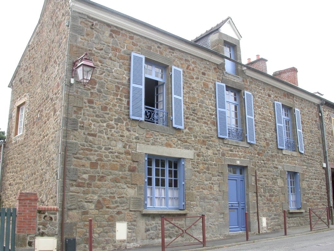 La maçonnerie de cette maison est composée de moellon de granite et de grès ; la toiture à longs pans est couverture d'ardoise. La façade de la construction est rythmée par trois travées composées d'ouvertures à encadrements de granite. Le comble à surcroît est quant à lui accessible par une porte haute pendante centrale.