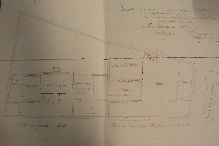 A. D. Ille-et-Vilaine. Série T : Enseignement, affaires culturelles, sports. Plan de l'école des garçons et des filles de Hédé (1905) : 12 T 535.