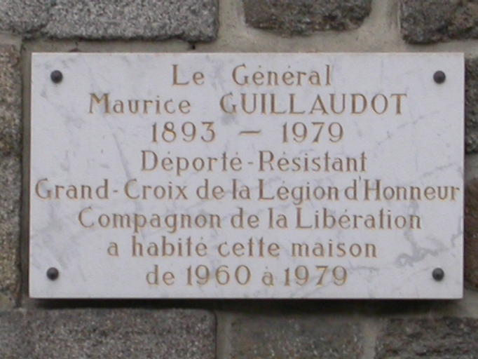 Cette maison présente une maçonnerie de moellon de granite et des encadrements de baies et chaînages d'angles en pierre de taille. La façade est percée de trois travées ; les baies de ces travées possèdent des garde-corps de style Art Déco. La souche de cheminée porte la date de construction de la maison : 1862. En façade, une plaque commémorative rappelle que le Général Guillaudot, déporté, résistant, Grand-Croix de la Légion d'Honneur, a habité cette maison de 1960 à 1979.