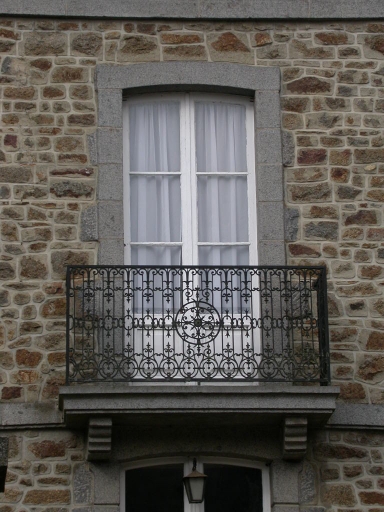 Cette maison est construite en moellon de granite ; les chaînages d'angles, les bandeaux et les encadrements de baies sont en granite. La toiture à croupes est couverte d'ardoise et il existe une crête de toit. La lucarne centrale, en pierre calcaire, est surmontée d'un fronton triangulaire. Il existe une cour à l'avant du bâtiment, qui est fermée par des grilles et un portail en fer forgé. De part et d'autre, à l'avant du bâtiment, il existe deux petits pavillons.