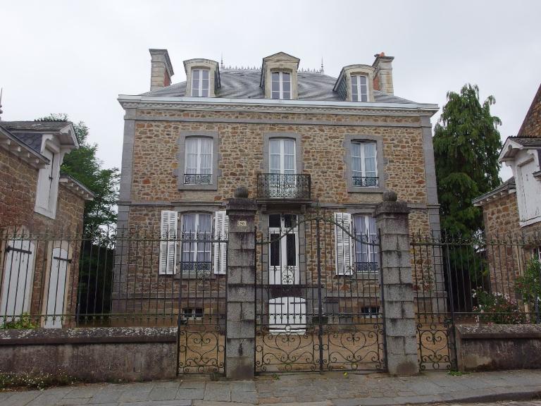 La construction de cette maison est datable de la fin du 19e siècle. Sa façade à trois travées, l'usage du granite pour les encadrements de baies et les frontons triangulaires qui surmontent les lucarnes, sont des éléments caractéristiques des constructions de cette époque.