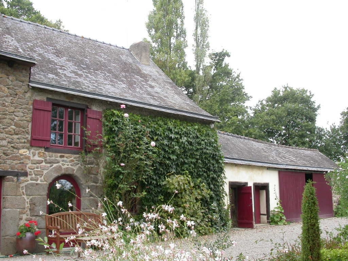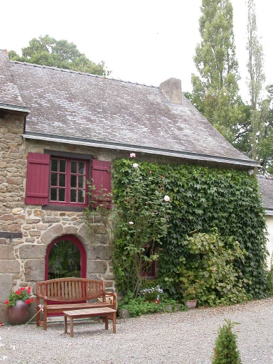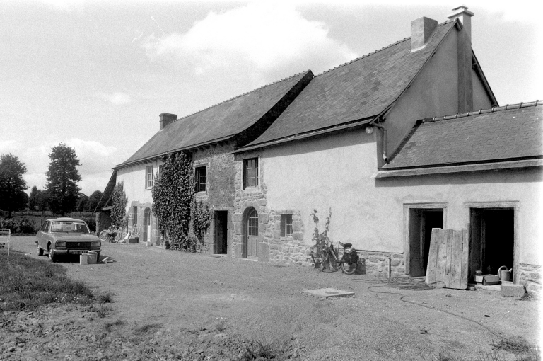 Cette ferme, accolée à sa voisine, est construite en moellon de granite et couverte d'ardoise. La porte du logis est une porte en plein cintre en granite décorée de boules. D'anciens refuges à porcs se trouvent dans l'alignement du logis, au nord.