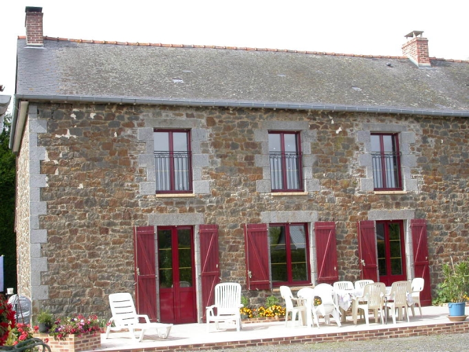 Cette construction possède une maçonnerie de moellon de granite ; le pignon nord est en terre. Le bâtiment possède des encadrements de baies et chaînages d'angle en pierre de taille de granite. Une ancienne étable se trouve au nord-est de la construction principale ; une fournil s'élève également au nord.
