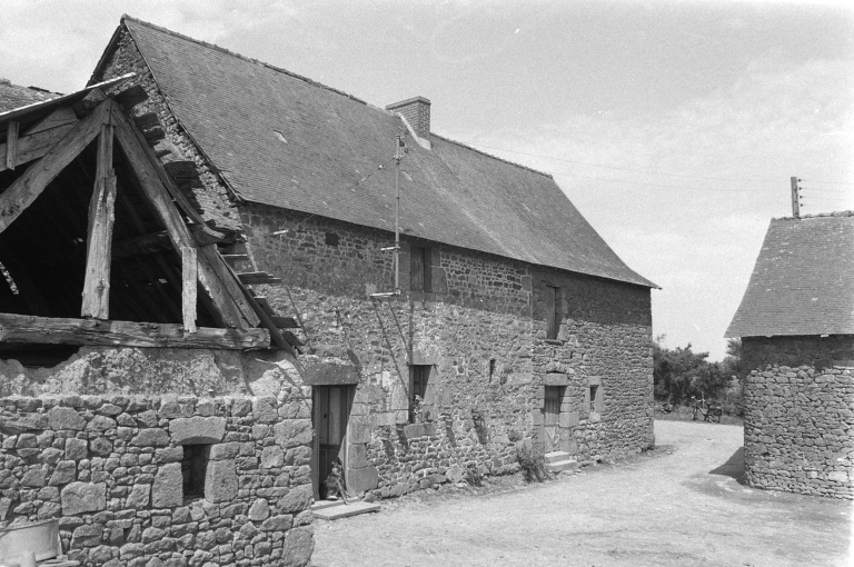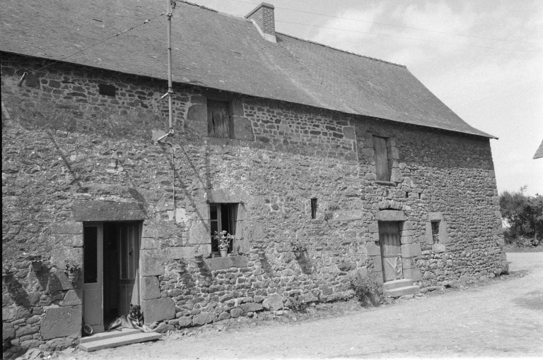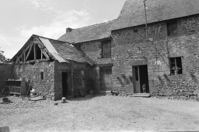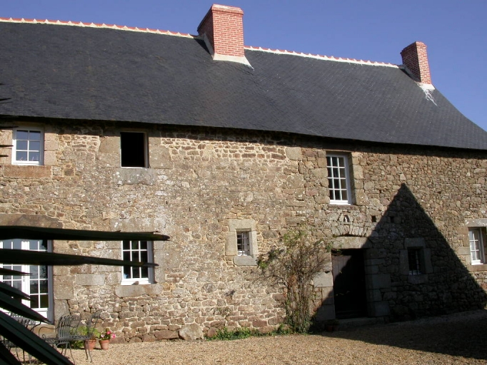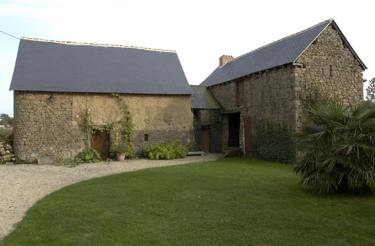 Cette ferme est composée de bâtiments élevés en moellon de granite et couverts d'ardoise. Les encadrements de baies sont en pierre de taille de granite. Le logis est situé dans la partie nord alors qu'un cellier et un fournil se trouvent au sud-est de la cour. La disposition des bâtiments ainsi que l'existence de murs de clôture contribuent à créer une cour fermée. A l'intérieur du logis, se trouve une cheminée dont le linteau est sculpté de deux écus, l'un porte l'inscription IHS et l'autre T H : /1615/ADRE.
