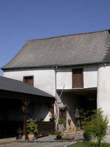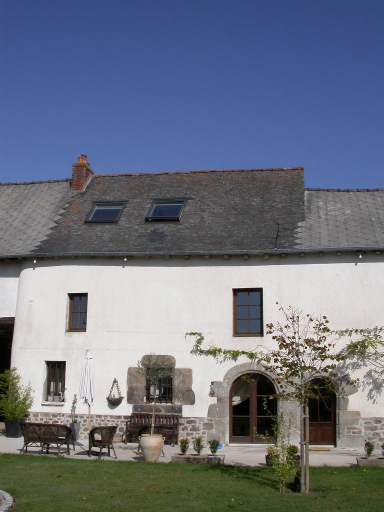 Cette ferme est composée de plusieurs bâtiments construits en terre enduite et couverts d'ardoise. La partie centrale possède des baies soignées à encadrements de granite : portes jumelées en plein cintre, fenêtre à linteau daté 1570... Les parties latérales sont réservées aux dépendances, un porche et un cellier à l'ouest notamment.