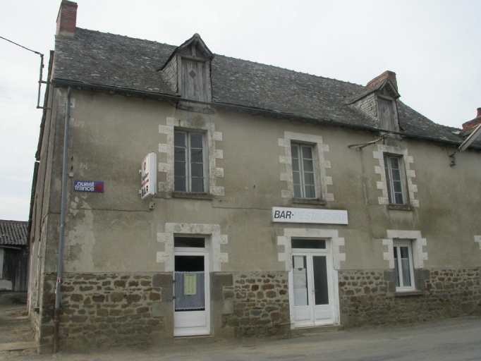 Ce bâtiment est construit en terre enduite sur un solin de moellon de granite ; il possède une toiture à longs pans en ardoise. La façade est percée de trois travées et le comble à surcroît est accessible grâce à l'existence de deux portes hautes pendantes. Un cellier se trouve dans un appentis postérieur.