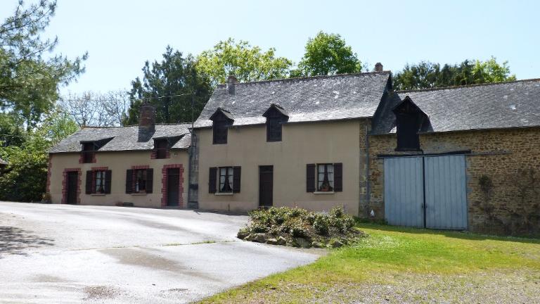 Cette ferme est composée de plusieurs bâtiments. A l'ouest de la cour, se trouvent le logis et l'ancienne grange. Les murs du logis sont enduits et les encadrements de baies sont en brique. La grange, située au nord de cet alignement, est construite en moellon de granite. Au nord de ce bâtiment se trouvent, dans une même construction, les porcheries et le fournil de la ferme. Au nord-est du logis actuel, il existe un long bâtiment en moellon de granite couvert d'ardoise. Un ancien logis, une étable et une écurie s'y trouvaient respectivement du nord au sud. Enfin, le dernier bâtiment se situe à l'est de la cour, il est également construit en moellon de granite et couvert d'ardoise. Un cellier s'y trouve actuellement. Le linteau de la fenêtre du pignon sud porte la date de 1797. Une pompe existe au milieu de la cour et un oratoire a été créé face à l'entrée du logis.
