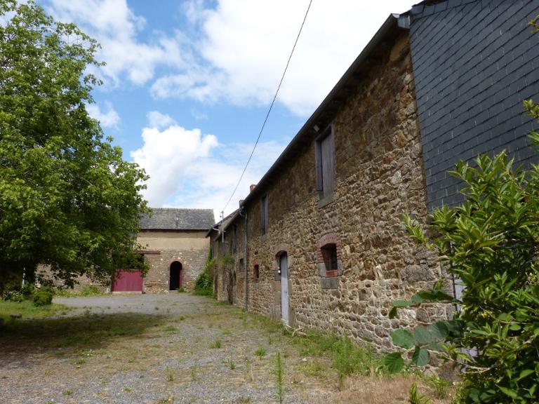 Cette ancienne ferme est composée de bâtiments construits en moellon de granite et en terre. L'ancien logis est composé de trois pièces à feu ; les portes jumelées en plein cintre de la façade desservent deux de ces anciennes pièces à feu. La troisième est située au nord des deux premières, dans un bâtiment légèrement plus haut que son voisin. La pièce à feu centrale possède une cheminée monumentale sur le mur nord et un vaisselier sur le mur sud. Un ancien cellier se trouve dans un appentis postérieur. Au sud des pièces à feu, dans le même alignement, se trouve l'ancienne étable. Une grange en moellon de granite et en terre ferme la cour de la ferme au nord ; les vestiges du fournil se voient encore face au logis. Enfin, un puits se trouve entre le logis et la grange.