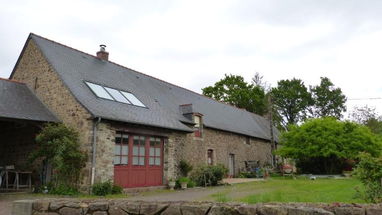 Ce bâtiment est construit en moellon de granite ; la toiture en ardoise possède une forte pente et un coyau. Les baies d'origine présentent des encadrements de granite chanfreinés. L'ensemble du bâtiment possède un comble à surcroît percé de portes hautes qui permettent l'accès au grenier.