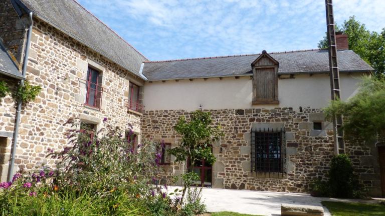 Les bâtiments qui composent ce lieu sont construits en moellon de granite et en terre. Ils sont couverts de toits à longs pans et de toits à croupes en ardoise. Les bâtiments forment un "U" autour d'une cour. Le logis se trouve au nord ; alors que les anciennes dépendances se trouvent dans les ailes est et ouest. La porte en anse de panier du logis est surmontée d'une accolade, sous laquelle se trouve un écu lisse aujourd'hui. La fenêtre voisine est grillée et possède un appui saillant.