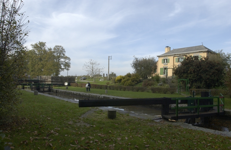 Cette écluse a été réalisée dans le cadre de la création du canal d'Ille-et-Rance, dont les travaux ont commencé en 1804 pour s'achever en 1832. Cette écluse a été conçue sur le même modèle que toutes les autres. Les sas ont 4, 7 mètres de largeur entre les bajoyers (parois latérales d'une chambre d'écluse) et 26, 3 mètres de longueur entre le sommet de l'arc du mur de chute et l'enclave des chambres des portes d'aval.