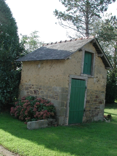 La maçonnerie est en moellon de grès et granite avec encadrements de baies et chaînes d'angle en pierre de taille de granite. Le pignon est est partiellement construit en terre. Nombreuses pierres en remploi sur la façade sud. La couverture est en ardoise. L'édifice conserve deux cheminées anciennes avec piédroits sculptés.