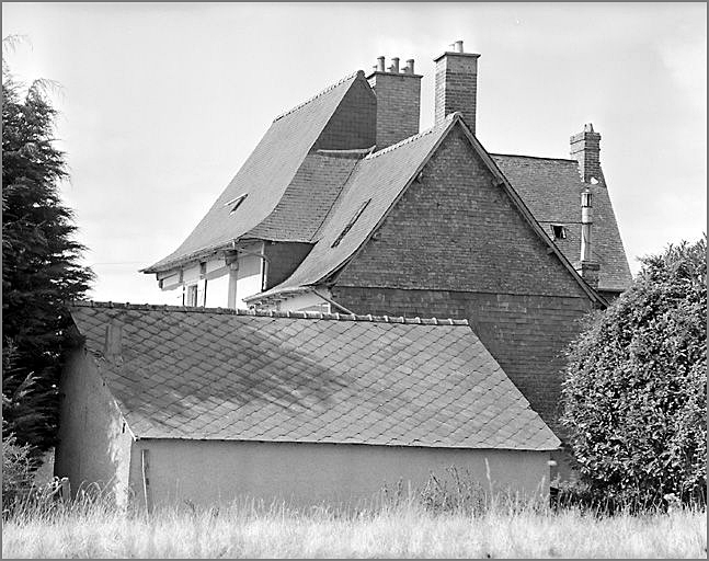 Les corps de bâtiments accolés sur l'élévation postérieure sont couverts par les prolongements des longs pans.