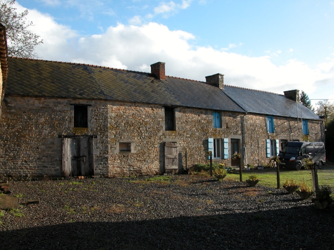 Un nombre importants de logis, construits en moellons de granite, quelquefois en pierre de taille, combinant logement et parties agricoles sous le même toit remontent fréquemment au 17e siècle voire à la limite du 16e siècle et du 17e siècle, à l'instar de maisons à la Chiffardière ou même rue du Rocher ou de la Fontaine dans le Bourg. Dans le courant du 19e siècle, suivant le cas exemplaire de Palmyre, construite ex nihilo, quelques fermes comme celles des Loges du Bourgouët sont reconstruites en totalité en maçonnerie de terre, suivant la technique locale de la bauge. Plus souvent les modifications qu'accompagnent les mutations qu'a connues l'agriculture au 19e siècle, nouveaux marchés, modes de production et mécanisation sans cesse croissante, se traduisent par des remaniements partiels des logis anciens et l'adjonction de nouveaux bâtiments agricoles en terre ou sur des sites d'anciens de manoirs, par exemple, par de nouvelles constructions semblables à celles de Hunault qui prennent la forme de longères.