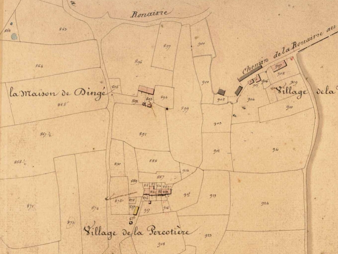Plan géométrique parcellaire de la commune de Dingé, section C2 dite de la Fresnais, [1835], échelle 1/2500e (A. D. d'Ille-et-Vilaine : 3P 5324).