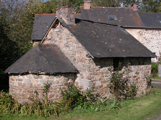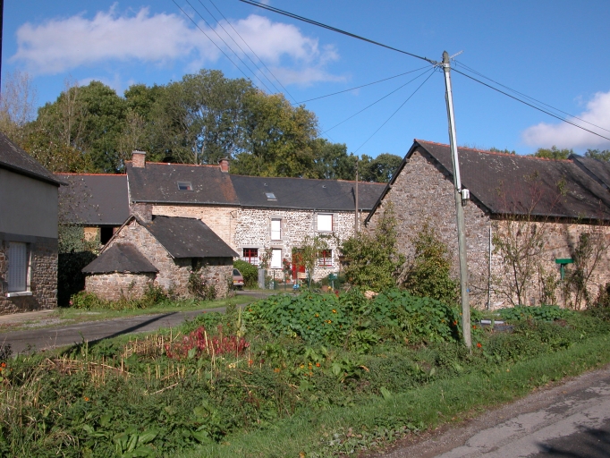 L'ancienne ferme peut remonter à la limite du 16e siècle et du 17e siècle ; son logis était probablement percé de deux portes jumelées en position centrale et doté d'une chambre à l'étage avant des profonds remaniements divisant la propriété sur son flanc est. Des parties agricoles ont été ajoutées en terre sur son pignon ouest au 19e siècle. Notons que le cadran solaire daté 1703 distingue, suivant l'expression en usage à l'époque, 'misire' [missire] René Pertuis parmi les prêtres. Si le cadran est en place depuis lors, l'ancienne ferme a été un temps une maison de prêtre. Toutefois G. de Corson ne signale pas René Pertuis dans la liste des recteurs qui se sont succédés à Dingé.