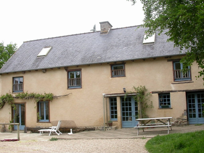 Les bâtiments qui composent cet ensemble sont élevés en bauge (technique consistant à créer un mur en terre en construisant des levées de 50 à 80 centimètres de haut) ; ils sont couverts d'ardoise. Les corbelets en bois de la corniche sont sculptés. Une des poutres de la partie est porte la date de 1840. Il existe deux dépendances élevées également en terre au sud du bâtiment principal.