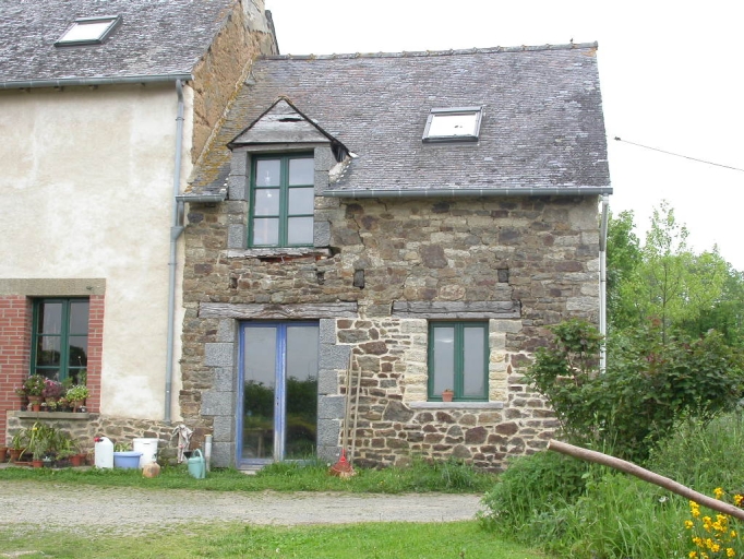 Le bâtiment principal de cette ferme est construit en terre enduite sur un solin composé de moellon de granite. La partie est du bâtiment est totalement élevée en moellon de granite. Le comble à surcroît est percé de plusieurs portes hautes qui donnent accès au comble. Au sud-est de la cour, se trouvent des porcheries construites en bauge également.