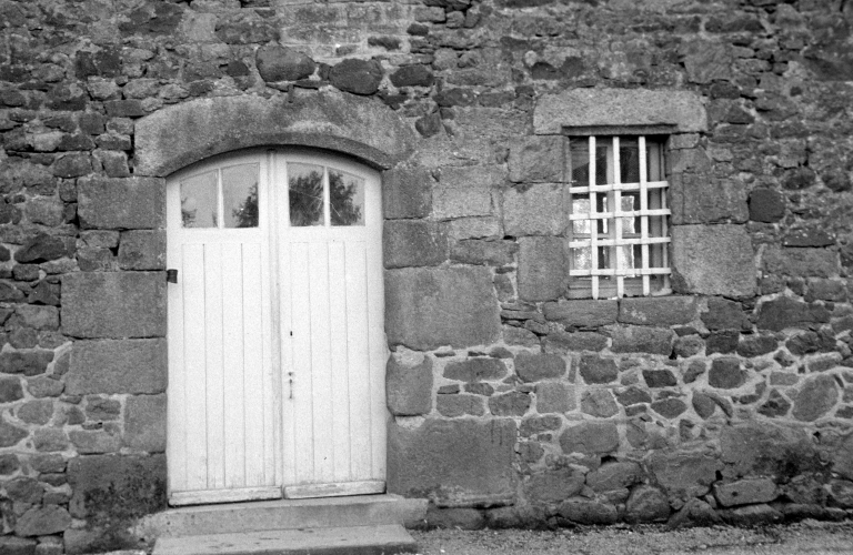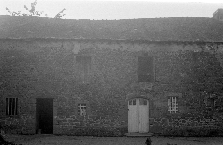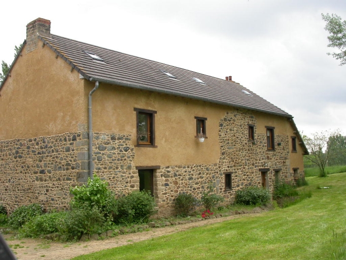 Cette ferme est construite en moellon de granite et en terre enduite en partie haute. Les encadrements des ouvertures sont en grand appareil régulier de granite et en bois. La façade est percée d'une porte avec un linteau en anse de panier et chanfrein sur les piédroits, de deux fenêtres grillées avec chanfrein, et d'une fenêtre grillée.