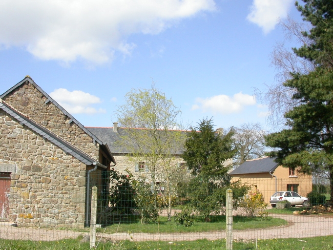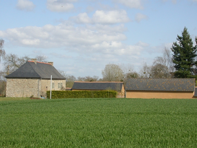 Cette ancienne ferme est en moellon de granite, la terre est employée sur les dépendances. La façade est notamment percée d'une fenêtre grillée et d'une fenêtre avec chanfrein et appui mouluré. Les baies ont un linteau légèrement cintré. Le toit est à croupe sur un côté et est décoré d'un épi en ardoise. La pente du toit est brisée par un coyau.