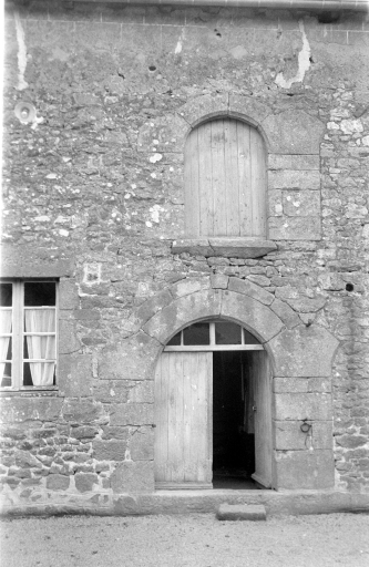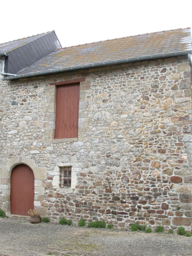 Cette ferme est construite en moellon de granite. Le haut des murs a été rehaussé en terre enduite. La façade était percée de trois portes en plein cintre avec chanfrein, d'une gerbière plein cintre avec chanfrein, d'une fenêtre grillée avec chanfrein et de deux fenêtres avec feuillure. La cheminée a un chanfrein sur les piédroits avec deux visages. Le linteau de la fenêtre disparue portait la date 1658.