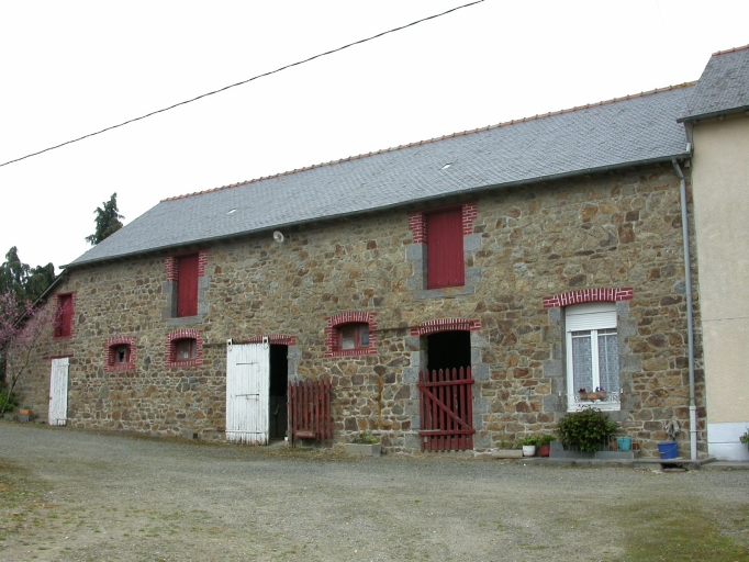 Le logis de la ferme est enduit et a des encadrements en brique avec un linteau cintré. Les dépendances sont en moellon de granite. La grange est couverte en tuile.