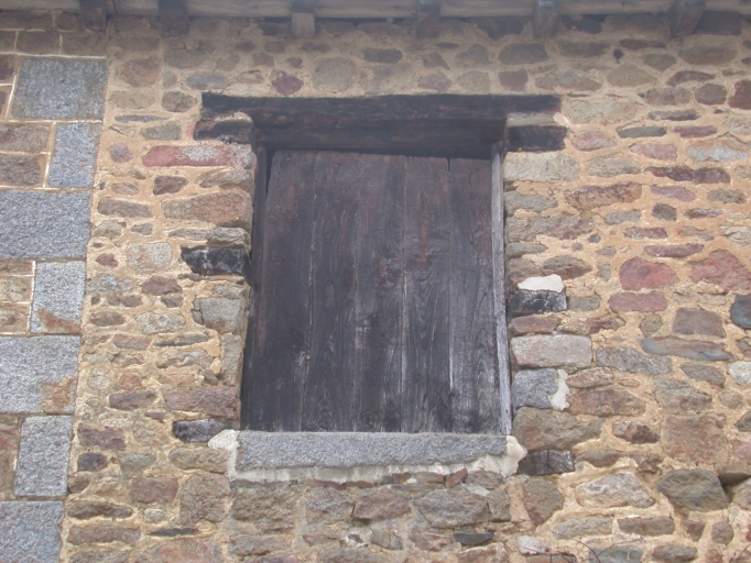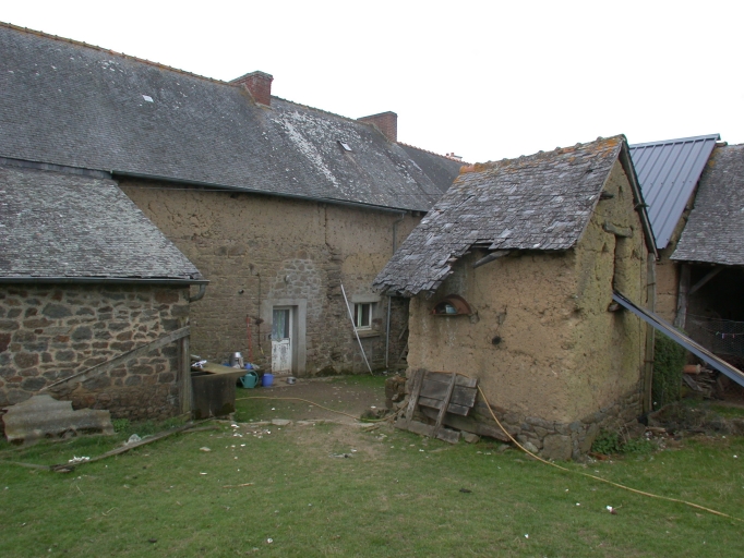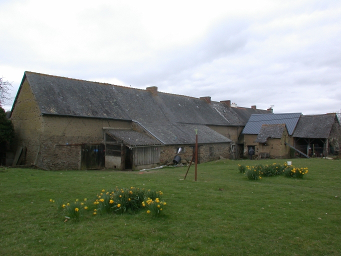 Ferme imposante avec logis et parties agricoles accolées. Dit de parti haut. Grenier en haut surcroît en partie aménagée en chambres. Logis à trois portes en rez-de-chaussée, correspondant à trois pièces : salle/chambre/salle. Gros oeuvre mixte. Façade antérieure en moellons de granite. Façade arrière en bauge. Encadrements des ouvertures également mixte : bois et pierre de taille de granite.