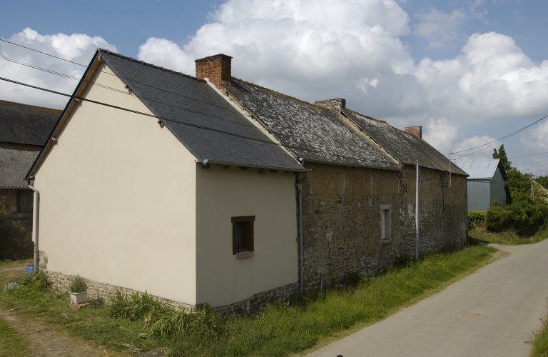 Logis double de plan rectangulaire, mitoyen d'une ferme. Dit de parti haut par la présence d'un étage habitable. Logis à deux pièces en rez-de-chaussée, à deux pièces à feu, dont une avec un vaisselier mural. Gros oeuvre en moellons de granite. Mur arrière avec partie haute en terre.