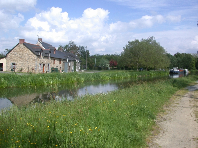 Situé au bord du canal d'Ille-et-Rance, cet alignement de trois logis a été construit en plusieurs campagnes de construction. Le logis du centre est le plus ancien, sa porte en plein cintre indique une datation avoisinante du 17e siècle. Il a été accolé de part et d'autre de nouvelles constructions qui remontent au 19e siècle et qui ont été modifiées par la suite. Le logis Est a servi de café et d'épicerie jusqu' en 1921. Son propriétaire aidait au début du siècle au déchargement des marchandises sur le port. Un atelier de tisserand est également mentionné à cet emplacement. Renseignements oraux. Oeuvre repérée présentant un intérêt patrimonial et historique.