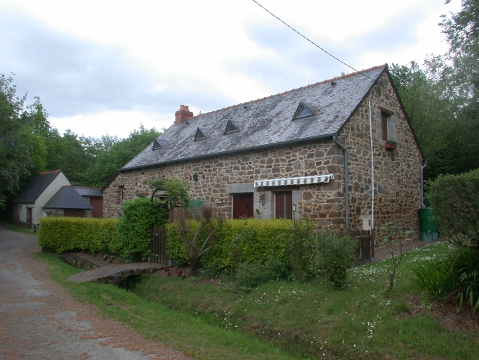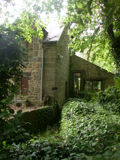 Appareillage mixte du gros oeuvre, ancen pignon recevant la roue en pierre de taille, façades en moellons de granite.Moulin accolé d'un logement.
