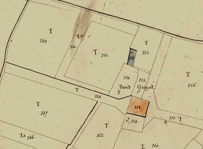 Le Bois Guyot est une ancienne seigneurie. Sur le cadastre de 1809, un vivier est signalé, signe de noblesse. Le logis se composait de deux pièces à feu en bas et d'une à l'étage. Il s'agit d'un bâtiment remanié au début du 20e siècle mais dont la construction pourrait remonter au 18e siècle. L'écurie possède également une cheminée, les poutres de cette dépendance permettent de la dater du 17e siècle. Les autres dépendances sont du 19e siècle.
