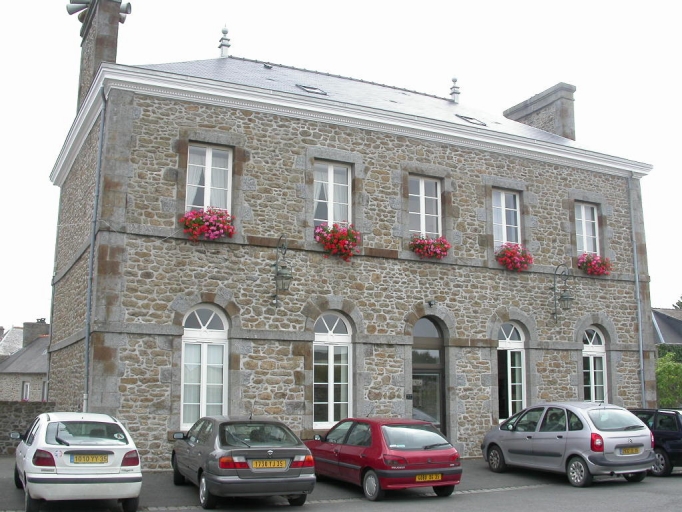 Un document d'archives nous apprend qu'il existe, en 1848, un projet d'acquisition de terrain nommé Chenevrière appartenant à Madame Quemerais afin d'y construire la mairie. L'acte de vente de ce terrain est signé en mai 1848 pour une valeur de 900 francs. Le bâtiment a vraisemblablement été réalisé dans les années suivantes. En effet, en 1893, des travaux de réparation eurent lieu à la mairie ; ces travaux ont été réalisés par l'architecte Monsieur Cadieu de Dol pour la somme de 2600 francs. Le bâtiment construit dans les années 1850 était destiné à la mairie et à l'école de garçons, ce qui explique ses dimensions importantes. A l'origine, le toit était surmonté d'un campanile abritant une cloche pour les usages de l'école vraisemblablement.