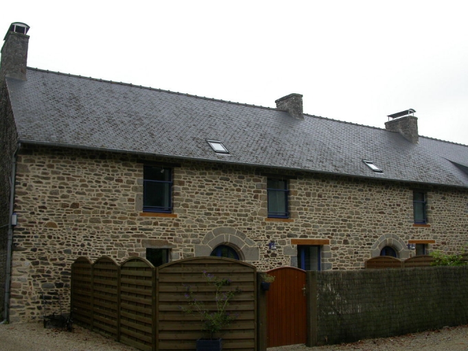 Ce bâtiment est élevé en moellon de granite et de schiste et possède un toit à longs pans couvert d'ardoise. Le rez-de-chaussée est surmonté d'un comble à haut surcroît accessible grâce à la présence de portes hautes. Les encadrements de baies sont en granite ; la porte présente un arc en plein cintre à double rouleau. Cette porte conserve une ferrure témoignant de l'existence d'un husset.