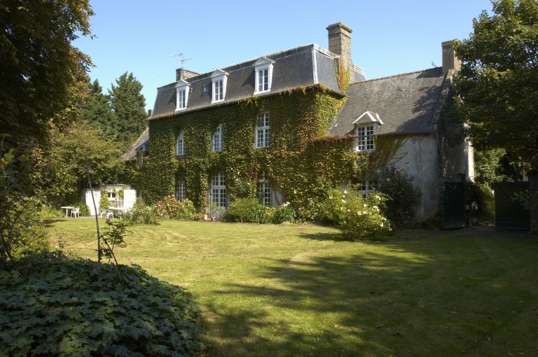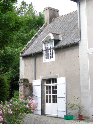 La maçonnerie de ce bâtiment est enduite. Le corps central est couvert d'un comble à la Mansart et possède des façades rythmées par trois travées, composées de baies à encadrements de pierre de taille de granite. Les baies qui forment ces travées sont quadrangulaires, seule la porte possède un linteau en arc segmentaire. Les ailes latérales, moins élevées, sont couvertes de toits à longs pans ; les pignons sont débordants. Le rez-de-chaussée du corps central est divisé en trois parties distinctes : un vestibule central contenant l'escalier est accolé d'une pièce au nord ainsi que d'une pièce au sud. L'aile latérale nord abrite l'ancienne cuisine de la demeure. Le jardin est clos de murs composés de moellon de granite ; il se trouve à l'ouest. Les dépendances de l'ancienne ferme se trouvent au sud ; elles sont composées de maçonnerie de moellon de granite et possèdent des toitures d'ardoise. Les baies présentent des encadrements de brique.