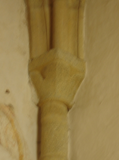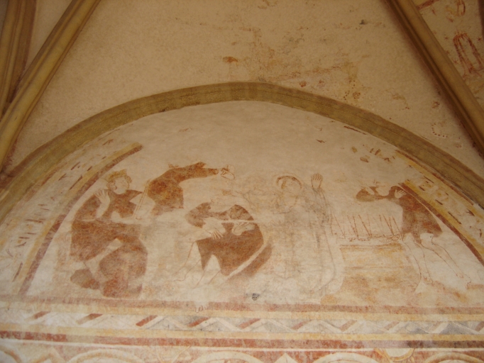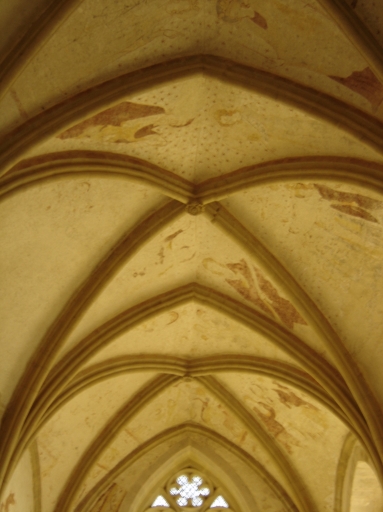 Sur le flanc sud de l´actuelle nef, correspondant à l´emplacement de l´ancien choeur, est accolée une salle basse de 14 m de long sur 5 m de large. De plan rectangulaire elle est percée à l´Est d´une grande baie gothique à meneaux et sur sa face Sud de trois baies en arc brisé. Elle ouvre au Nord sur la nef, ancien choeur roman probablement et à l´Ouest sur le bras Sud du transept. Cette salle est voûtée sur croisée d´ogives dont les retombées s´effectuent sur des colonnettes engagées dans les angles et sur les murs latéraux. Elles sont couronnées de chapiteaux ornés de feuillages mais aussi de grotesques. Lors de sondages effectués en 1984 et 1986, un ensemble très riche de peintures murales a été découvert. Elles sont datables de la fin du 13e, début du 14e siècle. On a proposé de voir dans cette salle une ancienne salle capitulaire ou l´ancienne sacristie de l´édifice, mais il pourrait tout aussi bien s´agir d´une simple chapelle reconstruite à l´emplacement d´une autre plus ancienne.