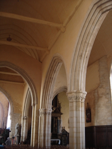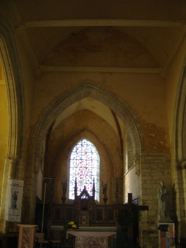 L'ancien choeur de l'église, qui sert actuellement de nef, fut doublé au 14e siècle au nord par un second vaisseau éclairé par trois grandes fenêtres. L´église possède un transept du 13e siècle avec deux bras dans lesquels sont ménagés vers l´Est des arcades ouvrant sur des chapelles. Au niveau du chevet actuel, à l´Ouest se dresse l´ancienne tour de croisée du transept, légèrement désaxée par rapport à l´édifice, elle remonte probablement à la fin du 12e siècle et au 13e siècle.