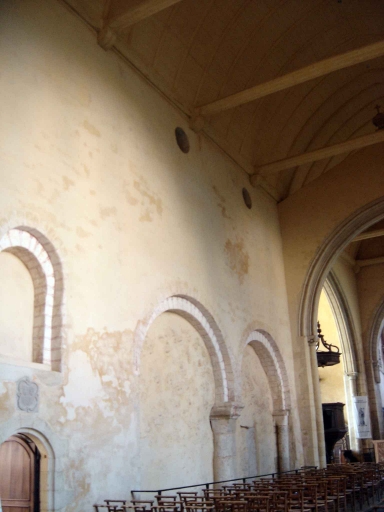 Le mur gouttereau Sud de l´actuelle nef présente les vestiges de la double arcade appartenant très probablement au choeur roman et une entrée communiquant avec la salle qui passe pour avoir été la salle capitulaire.