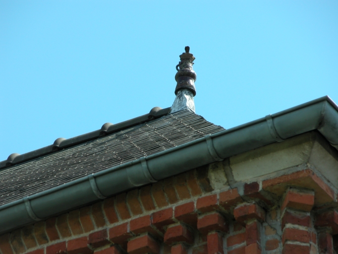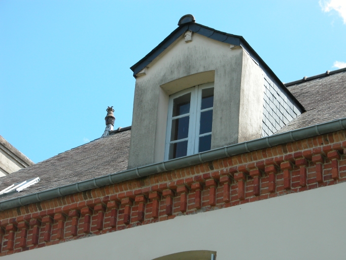 Implantation en retrait de la rue. Plan en U. Corps central rectangulaire, à étage, à trois travées. Lucarne centrale en brique avec fronton triangulaire. Dépendances plus basses avec ailes en retour d'équerre sur l' arrière. Présence d'un passage latéral couvert. A noter : épis de faîtage en poterie vernissée, avec décor d'oiseau, de production locale, dite poterie de Fontenay.