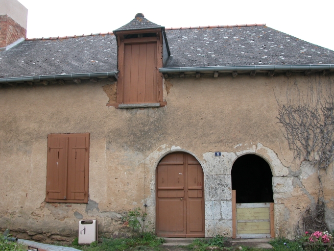 Implantation en retrait de la rue. Plan rectangulaire. Parti bas, rez-de-chaussée surmonté d'un grenier en surcroît éclairé par une lucarne pendante. Logis dit à fonctions combinées regroupant ici deux pièces dont une seule était réservée autrefois à l'habitation. Logis/étable ou logis/ cellier. Ce logis sert actuellement de resserre. Gros oeuvre en terre. A signaler les portes jumelées en plein-cintre et leur appareillage en pierre de taille de calcaire. Orientation est de la façade.