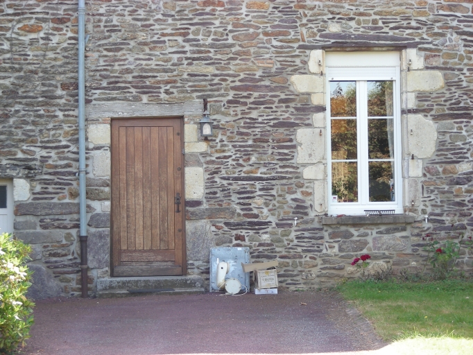 Le gros-oeuvre de ce bâtiment est réalisé en moellon de schiste, pourpre principalement. Les toitures sont couvertes d'ardoise. La partie centrale de la construction est plus élevée et est couverte d'un toit en pavillon, alors que les autres parties sont couvertes de toits à longs pans. Les encadrements de baies sont réalisés en pierre calcaire et en schiste. Les linteaux des baies sont réalisés en bois. La partie centrale de la construction, la plus élevée, abrite un escalier en bois à balustres. Cette partie de la construction possède par ailleurs une cave. Deux anciens pavillons se trouvent à l'entrée de la cour du bâtiment, ils sont également construits en moellon de schiste, même si celui du sud est recouvert d'un enduit.