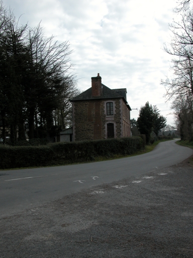 Orientation ouest. Logis de plan rectangulaire à 4 travées en façade principale. Les encadrements des baies et 2 bandeaux décoratifs en brique soulignent le rythme de la façade. A l'origine, il existait 5 portes en rez de chaussée. La présence d'anneaux d'attache pour les chevaux ainsi que l'implantation à un carrefour de circulation traduisent l'existence probable d'un ancien commerce. Il existe également une cave en soubassement. A noter les initiales : B et C sur les souches de cheminées.