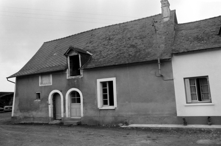 Orientation sud. Logis à fonctions combinées à une pièce à feu. Gros oeuvre probablement en schiste et terre avec encadrements des baies en pierre de taille. Deux portes jumelles en plein cintre avec piédroits en calcaire et partie cintrée en briques, ce qui semble montrer un remaniement du 19e siècle. Il existe un cellier en annexe. Toiture à deux pans avec coyaux importants. Lucarne pendante en bois. Il semble que le pignon soit plus ancien que la façade.