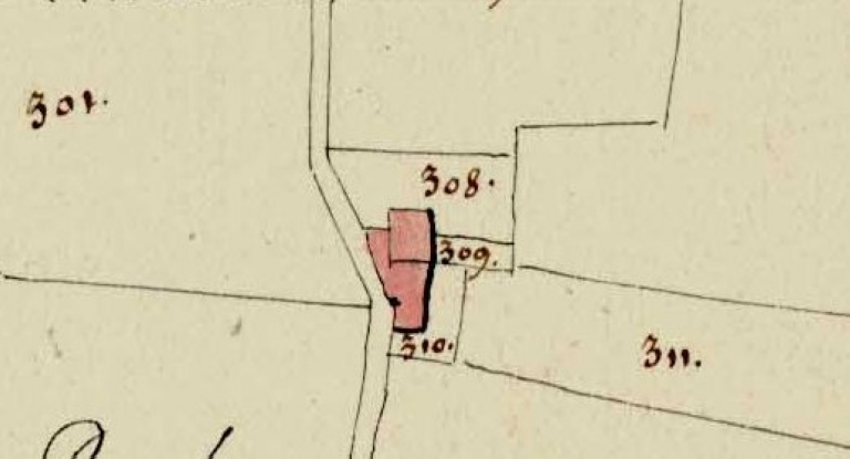 Orientation est. Logis et dépendances accolées. Étable ou cellier formant une aile en appentis accolé au pignon nord. Étable indépendante à l'arrière. Deux cours.