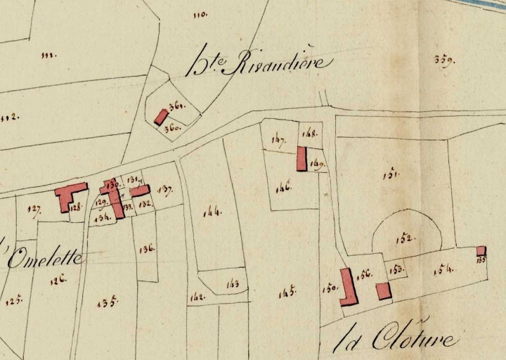 Deux cours. Le logis indépendant est dit de parti bas, il est composé de deux pièces à feu avec distribution indépendante et un appentis arrière. Les parties agricoles s´organisent principalement autour d´une cour arrière.
