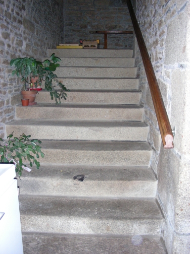 La façade sud du logis du logis situé à l'Est est construite en granite en petit appareil régulier. Les chaînages d'angle et les encadrements de baies sont composés de pierres de taille de granite qui semblent avoir été taillées en série. Le toit à longs pans de cette partie est couvert d'ardoise. A l'intérieur, face à la porte, se trouve un escalier droit monumental en granite à deux volées. Au sommet de la première volée, le mur nord du bâtiment est percé d'un jour en forme de meurtrière. Le bâtiment est composé de deux pièces à feu superposées, les cheminées se trouvent sur le mur pignon est. Le bâtiment situé au sud-ouest de la cour présente également une maçonnerie de moellon de granite ainsi qu'un toit à longs pans couvert d'ardoise. Les encadrements des baies sont particulièrement décorés : fenêtre à appui saillant et linteau à accolade, ancienne porte en plein cintre à husset...