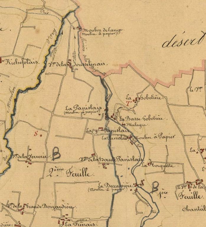 Il existait deux moulins à papier nommés la Panislais sur le cadastre de 1834. L'un, situé sur la parcelle B476, est ici nommé Panislais ; l'autre, situé sur la parcelle B487 est ici nommé Basse-Panislais. Il ne reste pas de trace de ces moulins, situés autrefois sur la rive gauche de la Bignette, en amont et en aval de la maison dite de Malagra, encore visible aujourd'hui.