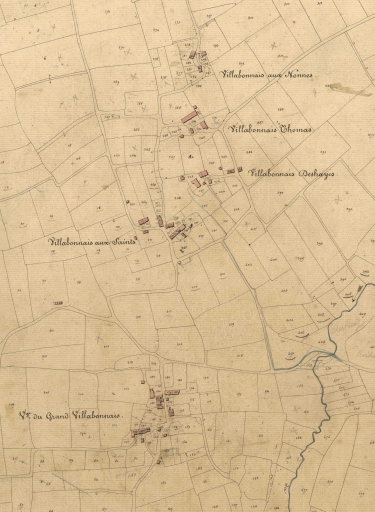 Cet écart est composé d'une manière relativement différente des autres groupes de constructions de la commune. Ainsi, le bâti est très aéré ; il existe simplement une concentration de bâtiments plus importante au sud, qui était désignée comme le village du Grand Villabonnais sur le cadastre de 1834. Les autres groupes de constructions, situés au nord portent tous le noms de Villabonnais, mais avec des variantes : Villabonnais aux Saints, Villabonnais Thomas.
