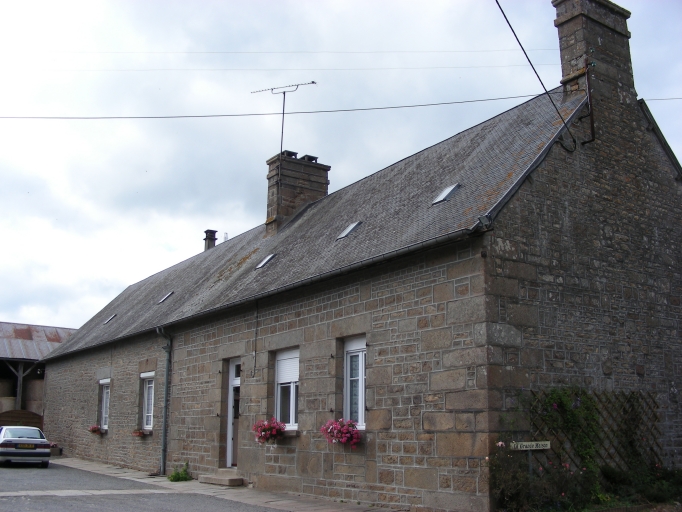 La façade principale du logis de cette ferme est élevée en moellon de granite disposé en assises régulières. Les baies ont des encadrements en pierre de taille de granite et sont régulières. Le logis possède deux cheminées superposées, la réfection du logis au 19e siècle a diminué de moitié en hauteur le logis, le plancher a donc été abaissé ce qui cache une partie du linteau et la hotte de la cheminée du rez-de-chaussée. Ce linteau est décoré en son centre d'un cercle orné de motifs et encadré d'un cartouche de chaque côté, l'un deux porte la date de 1578. La hotte visible dans le grenier est très haute et présente un bel appareillage de pierre de taille de granite. La cheminée de l'étage a perdu son linteau mais il s'agit d'une cheminée à colonnes, typique des cheminées d'étage du 16e siècle.