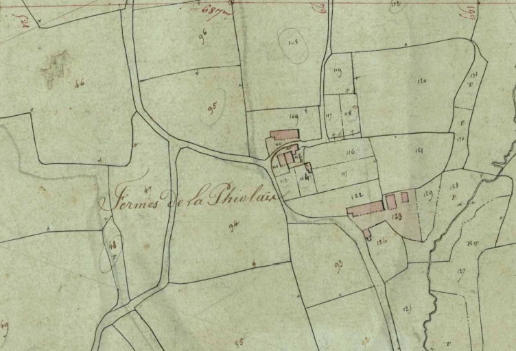 Le village de la Phiolais est situé au nord du village. Il s'agit d'un écart assez peu étendu regroupant un ancien manoir devenu ferme et une ferme. En 1833, lors de la levée du premier cadastre de la commune, la composition de cet écart était à peu près la même que la composition actuelle sans qu'aucune construction majeure ne semble avoir disparu. Les bâtiments qui le composent aujourd'hui sont figurés sur ce document, puisque leur construction semble remonter pour le plus ancien au 16e siècle. En effet, le manoir de La Phiolais cité dans le livre de Paul Banéat appartenait aux de Poilley de 1513 à 1789. C'est sans doute à leur suite que le manoir fut transformé en exploitation agricole et que des bâtiments d'élevage et de stockage furent construits. Les dépendances de la seconde ferme datent en majorité de la fin du 18e siècle ou du début du 19e siècle, cependant le logis est plus ancien. La façade principale de celui-ci a été très remaniée au 20e siècle mais il reste une partie où l'on voit encore des ouvertures chanfreinées indiquant une construction datant au moins du 18e siècle, peut-être même antérieure. Ainsi, les bâtiments de cet écart ont subi quelques remaniements en façade au cours du 20e siècle et sans doute dès le 19e siècle, cependant quelques éléments remarquables subsistent dans cet écart, notamment au niveau de l'ancien manoir, et sont typiques du 16e siècle grâce à leur décor : porte en plein cintre, baies chanfreinées, appui saillant décoré de boules.